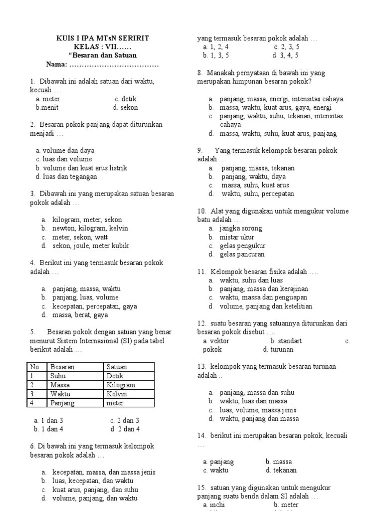S m a negeri 1 blahbatuh. Berikut ini akan di bahas latihan soal yang di ambil dari buku pr fisika kelas x semester 1, terkait dengan materi besaran, satuan dan . Kelas / semester / alokasi waktu : Besaran dalam fisika terbagi menjadi dua: 3.2.1 memahami besaran fisika dan satuannya.